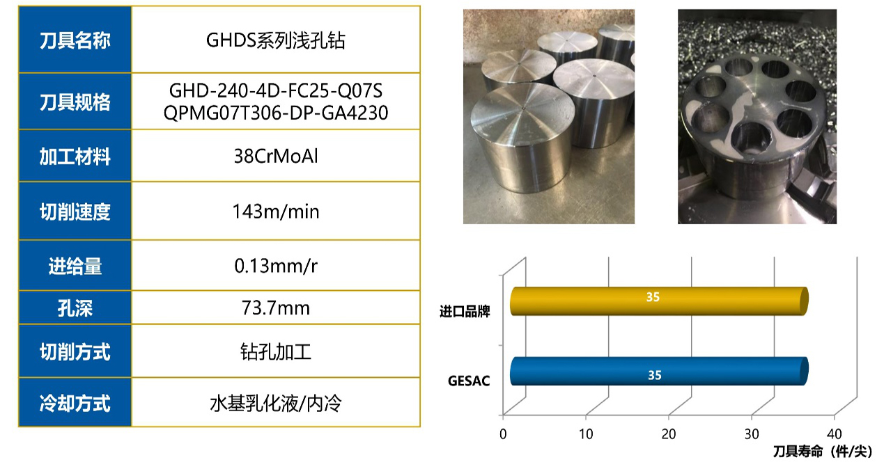 柱塞泵缸体钻孔加工,在相同工况情况下,我司GHDS刀具性能与市场主流进口品牌同类刀具相当。